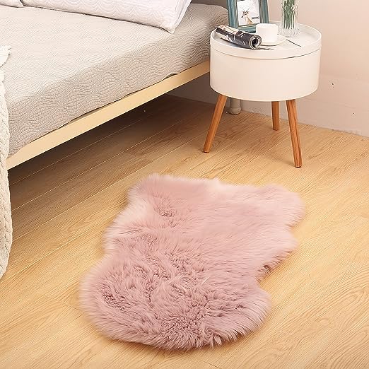 I have this faux sheepskin rug/sofa cover in grey. I use it as a rug in front of my dresser, where I step each day. It is soft, machine washable, and does not shed. It's helpful to take a moment to be mindful and ground myself when my feet touch it.