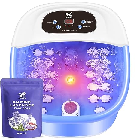 The feet hold nerves and acupressure points that, when massaged, help relieve stress, tension, and pain. This foot spa has bubble massage, vibration massage, and shiatsu rollers, and it also has temperature control! The foot spa also comes with a 16oz bag of a calming Lavender Epsom Salt foot soak.